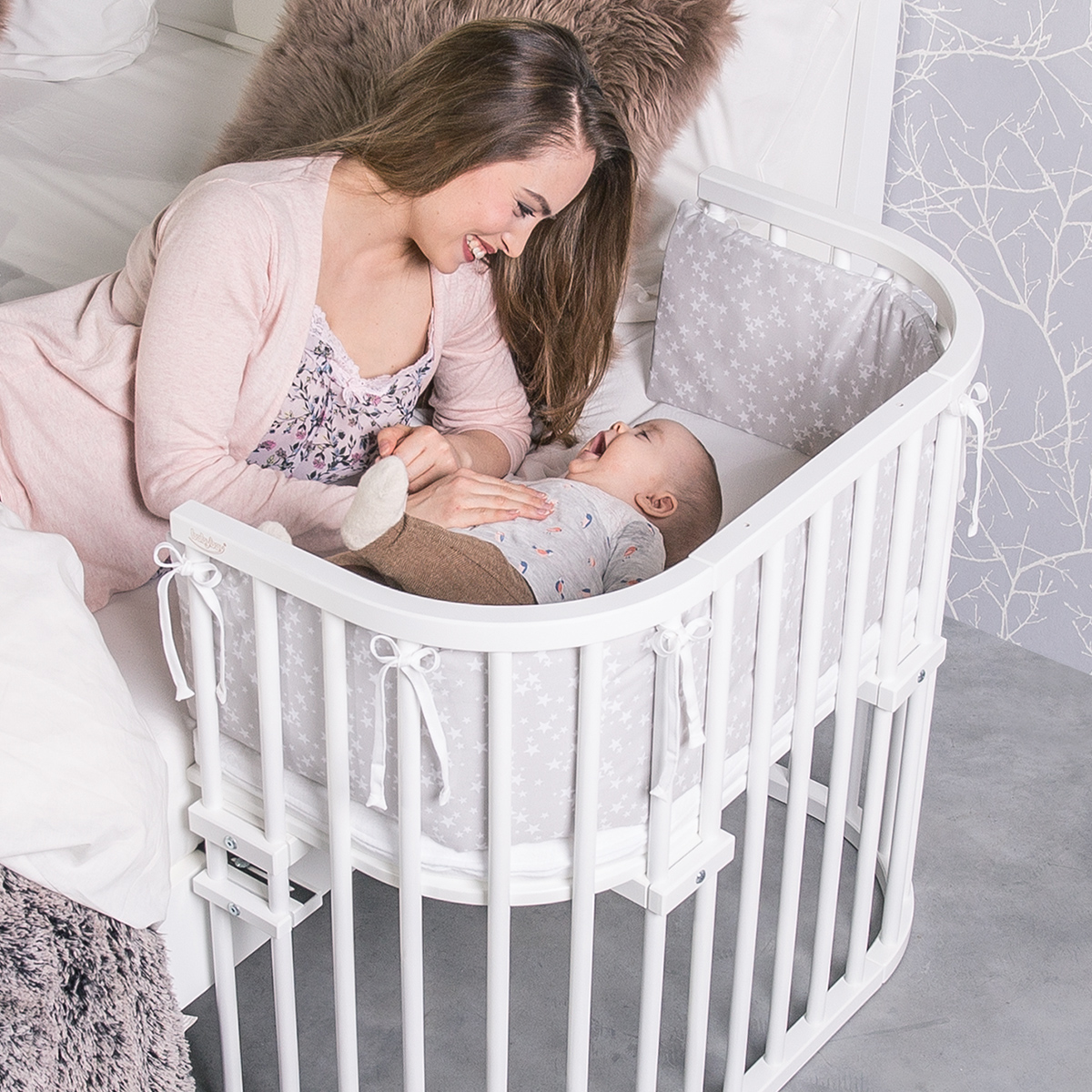 babybay® – Ganz nah bei Mama und Papa. Das Original babybay Beistellbett ist eine besonders sichere und komfortable Schlaflösung für Babys und Eltern. Direkt am Elternbett montiert, bieten Sie auch den kleinsten Babys einerseits die Geborgenheit und Sicherheit eines eigenen und begrenzten Bettchens, andererseits ermöglichen sie jederzeit Körperkontakt ohne den Schlaf von Eltern und Kind zu stören. So können Mütter Ihr Baby in der Nacht schneller trösten, beruhigen oder stillen ohne extra aufstehen zu müssen.