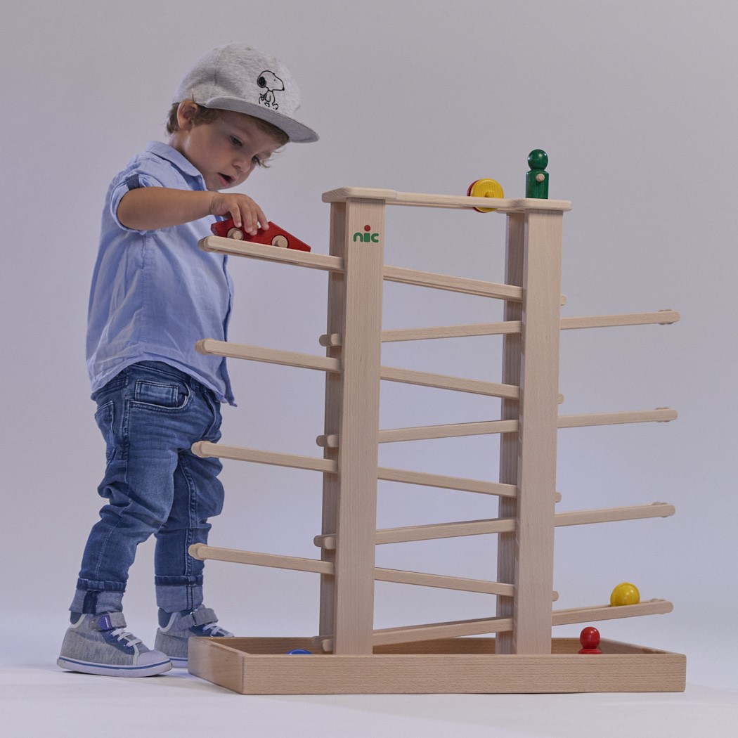 Holzspielzeuge von nic stehen seit über 30 Jahren für kreatives und stabiles Spielzeug in höchster Qualität, vereint mit genialem Spielwert. Alle nic-Produkte unterliegen strengsten Sicherheitskriterien, sind ausgezeichnet u.a. durch Siegel wie „spiel gut“ und werden hauptsächlich am Firmensitz in Süd-Deutschland hergestellt. Einzigartige Multibahnen, creamobil-Fahrzeuge oder das faszinierende Baustein-Stecksystem cubio aus wertigsten Buchenhölzern zeichnen das hochwertige Sortiment aus. nic zählt unbestritten zu den Premium-Herstellern in der Welt der Holzspielwaren. Mit Klassikern, die nie langweilig werden und dem Thema Nachhaltigkeit genießt es vollste Aufmerksamkeit von Klein und Groß. Kurzum, Spielzeug für Generationen!