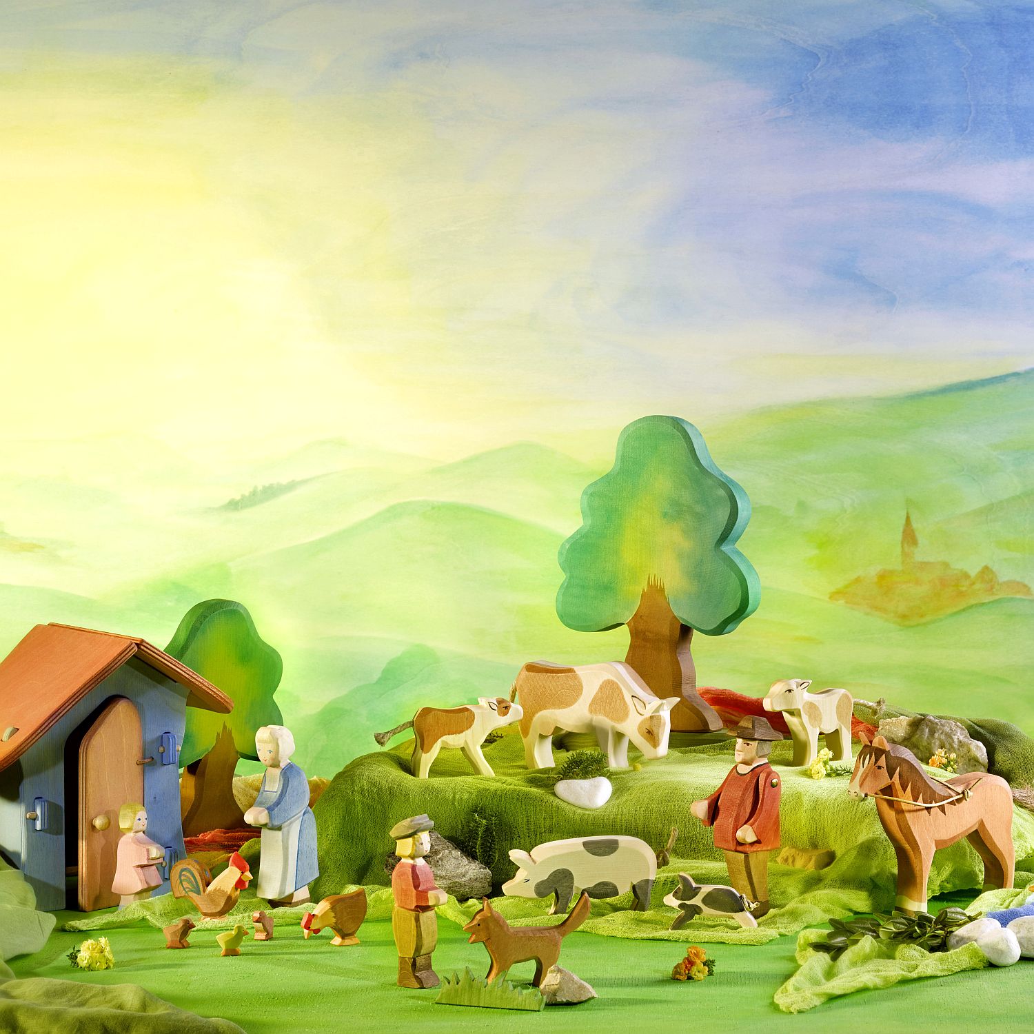 Die weltbekannten Ostheimer Holzfiguren sind allesamt wertvolle Einzelstücke, in künstlerischer Handarbeit gefertigt. Der warme, natürliche Werkstoff Holz stammt aus nachhaltiger Forstwirtschaft. Die Figuren werden mit zertifizierten Farben liebevoll bemalt und mit ausgesuchten biologischen Ölen veredelt. Seit mehr als 80 Jahren bringen Ostheimer Holzspielzeuge ein liebenswertes und schönes Abbild der Welt in die Kinderzimmer. Sie zeichnen sich aus durch ihren hohen pädagogischen Wert. Die Holzfiguren und -tiere mit ihrer charakteristischen Formgestaltung und Bemalung lassen der Kinderseele Raum zum phantasievollen, freien Spielen. Besondere Spielwelten entstehen.