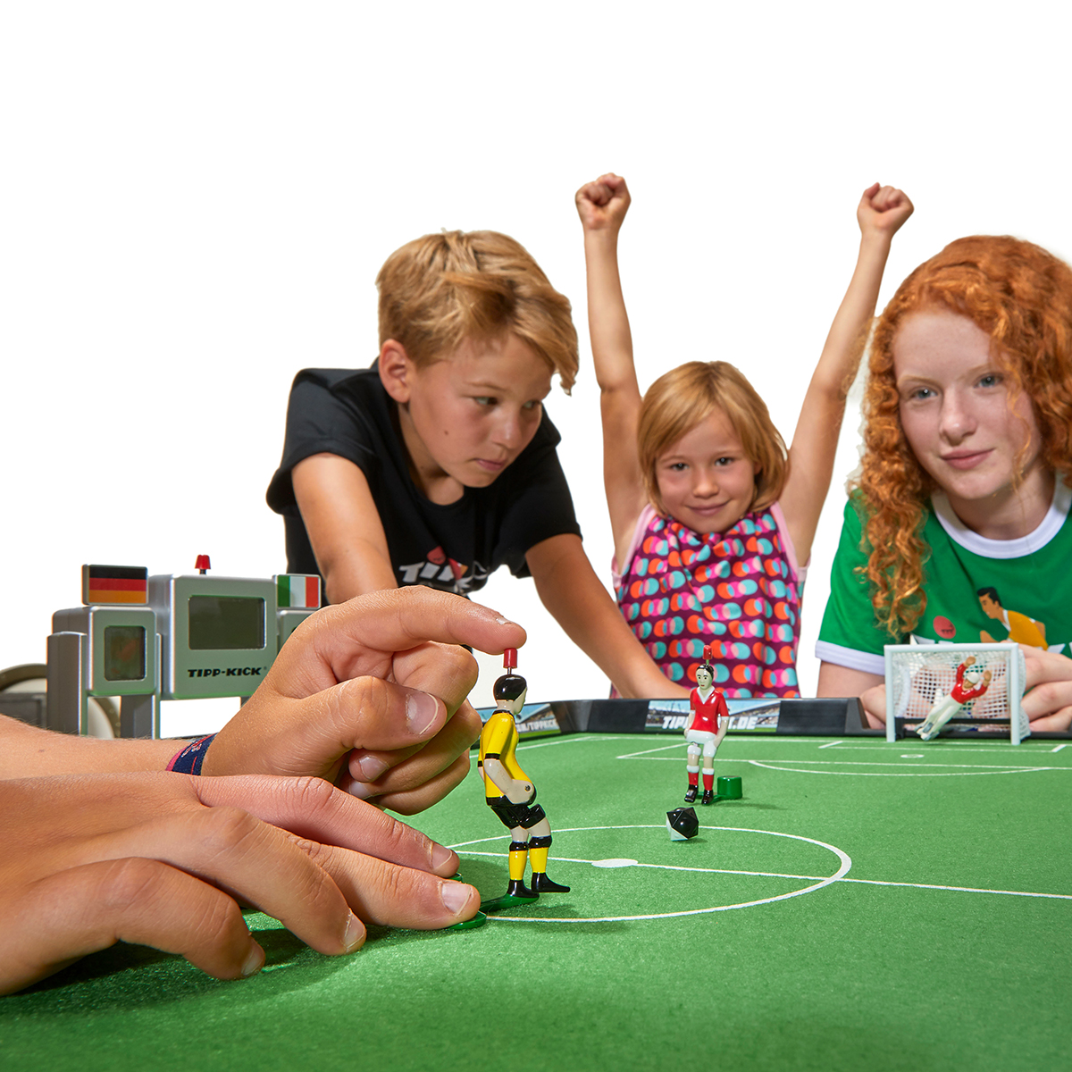 TIPP-KICK wird seit fast 100 Jahren von der Firma Mieg - einem kleinen Familienbetrieb aus dem Schwarzwald - hergestellt. Mehr als 6 Millionen verkaufte Spiele sind der Beweis, dass TIPP-KICK seit Jahrzehnten ein fesselndes Spiel ist - nicht nur für Fußballenthusiasten. Bei dem klassischen, mechanischen Tischfußballspiel sind Spielfiguren aus Metall die Basis. Sie werden nach wie vor in aufwändiger Handarbeit montiert. Glanzpunkt sind die individuellen Bemalungen, ebenfalls von Hand. Jeder Kicker ist ein Unikat!