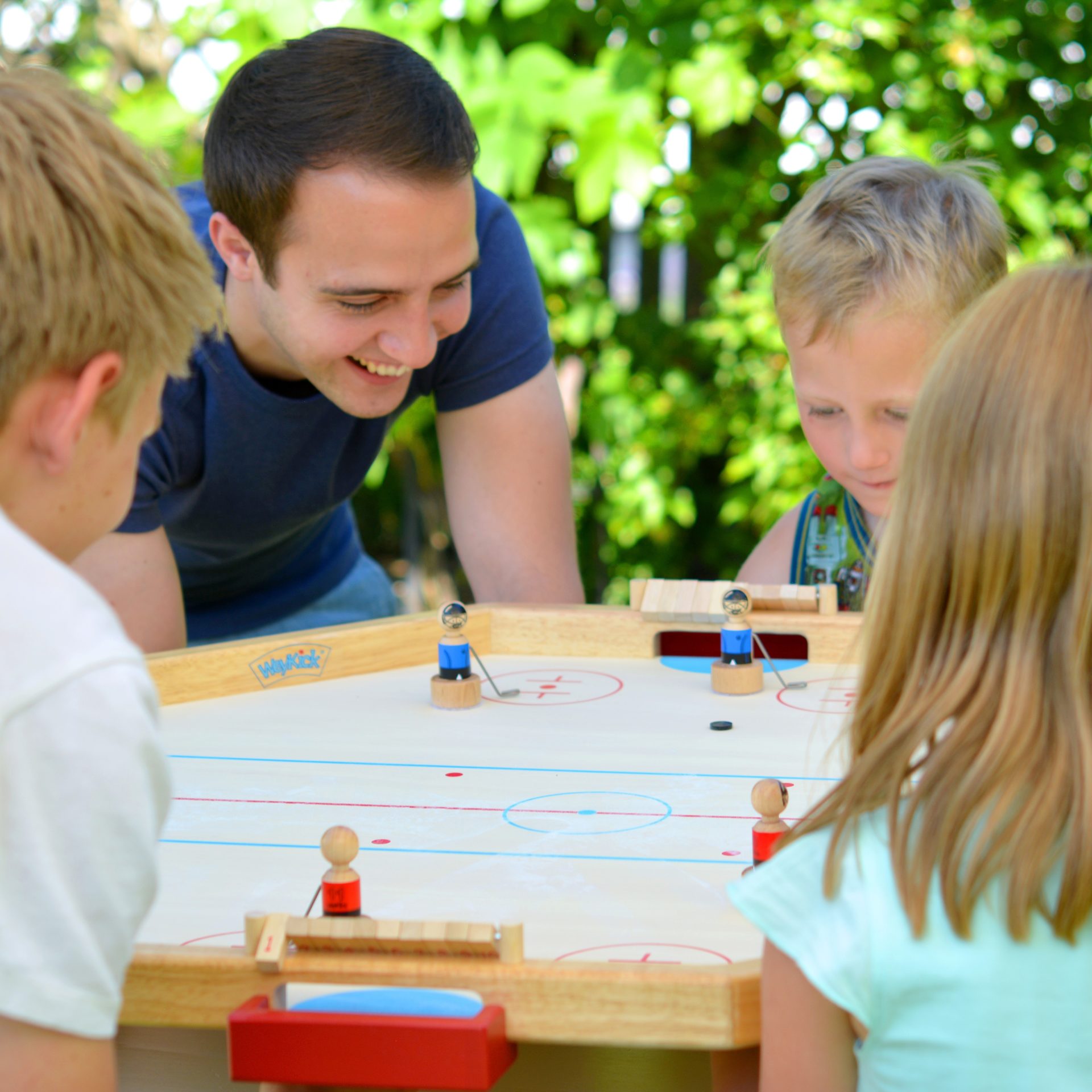 Kindergärten und Schulen bestätigen es uns immer wieder: WeyKick-Spiele sind von außerordentlicher Qualität. Dank des hohen Anspruchs an Qualität, sorgfältige Verarbeitung und der Massivholzbauweise bestehen WeyKick-Spiele seit Jahren den Härtetest spielbegeisterter Kinderscharen. Apropos Holz, WeyKick wird aus Gummibaumholz gefertigt. Dieses Holz stammt aus Latex-Plantagen. Produzieren die Bäume nicht mehr genug Latex, werden sie abgeholzt und es erfolgt eine Neubepflanzung derselben Nutzfläche. Das Holz fällt als Neben- bzw. Abfallprodukt an. Studien zeigen, dass Gummibaumholzplantagen genauso effektiv CO2 absorbieren können wie herkömmliche Wälder.